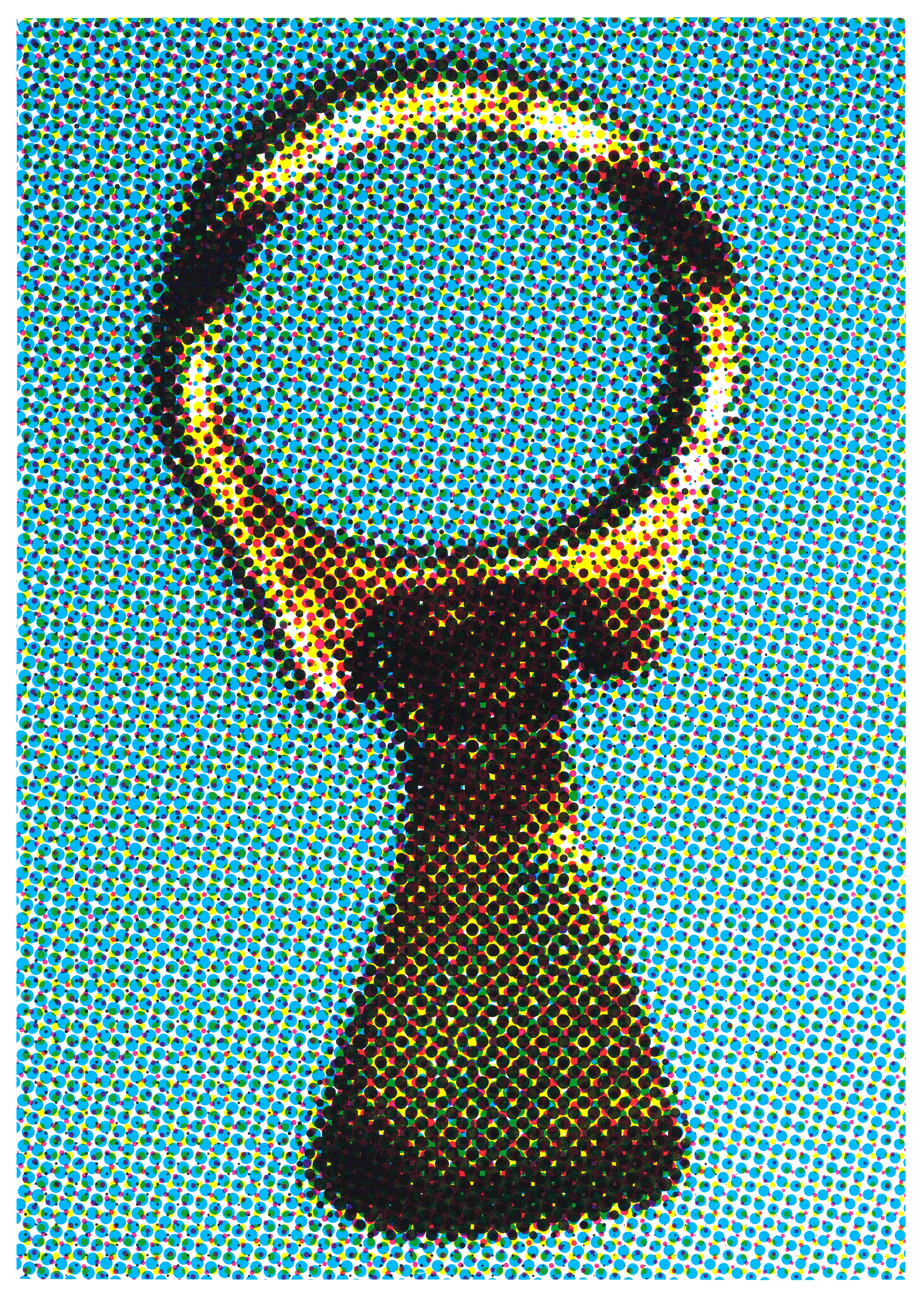 In an attempt to imitate the mechanical reproduction of photographs, each image is separated into the four process colours – cyan, magenta, yellow and black – traced and hand-cut, and then printed on an Adana 8 × 5 press in my back room.
